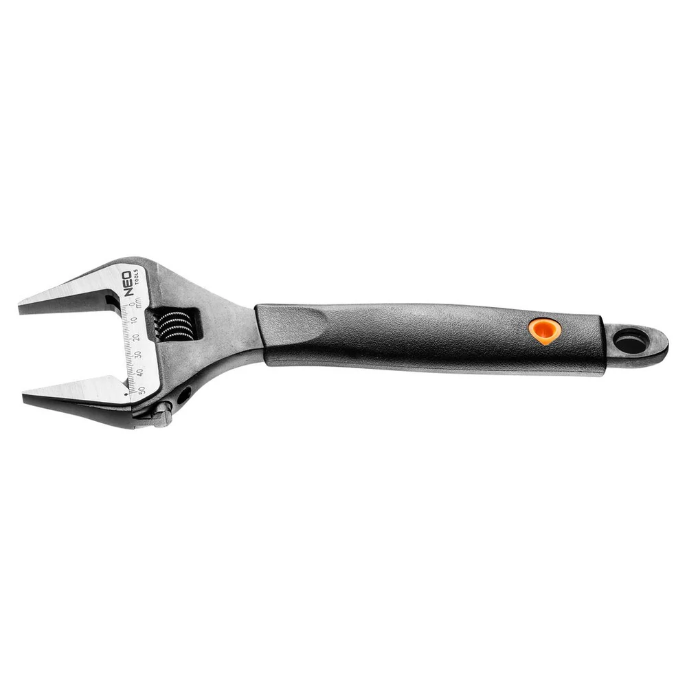 A NEO franciakulcs nagy ellenállóképességű króm-vanádium acélból készül kovácsolással. Megkülönbözteti a pofák nagyon széles határok közötti állíthatósága. A pofák nyithatósága 40%-al nagyobb a standard kulcsokénál. A hosszabb, keskenyebb fej lehetővé teszi a munkát nehezen hozzáférhető helyeken is. Ergonómikus, olajoknak, zsíroknak ellenálló TPR műanyag bevonatú markolattal. A szerszám minőségét bizonyítja a TÜV tanúsítvány és a gyártó által nyújtott 25 éves jótállás. A NEO márka a professzionális igényeket is kielégíti.