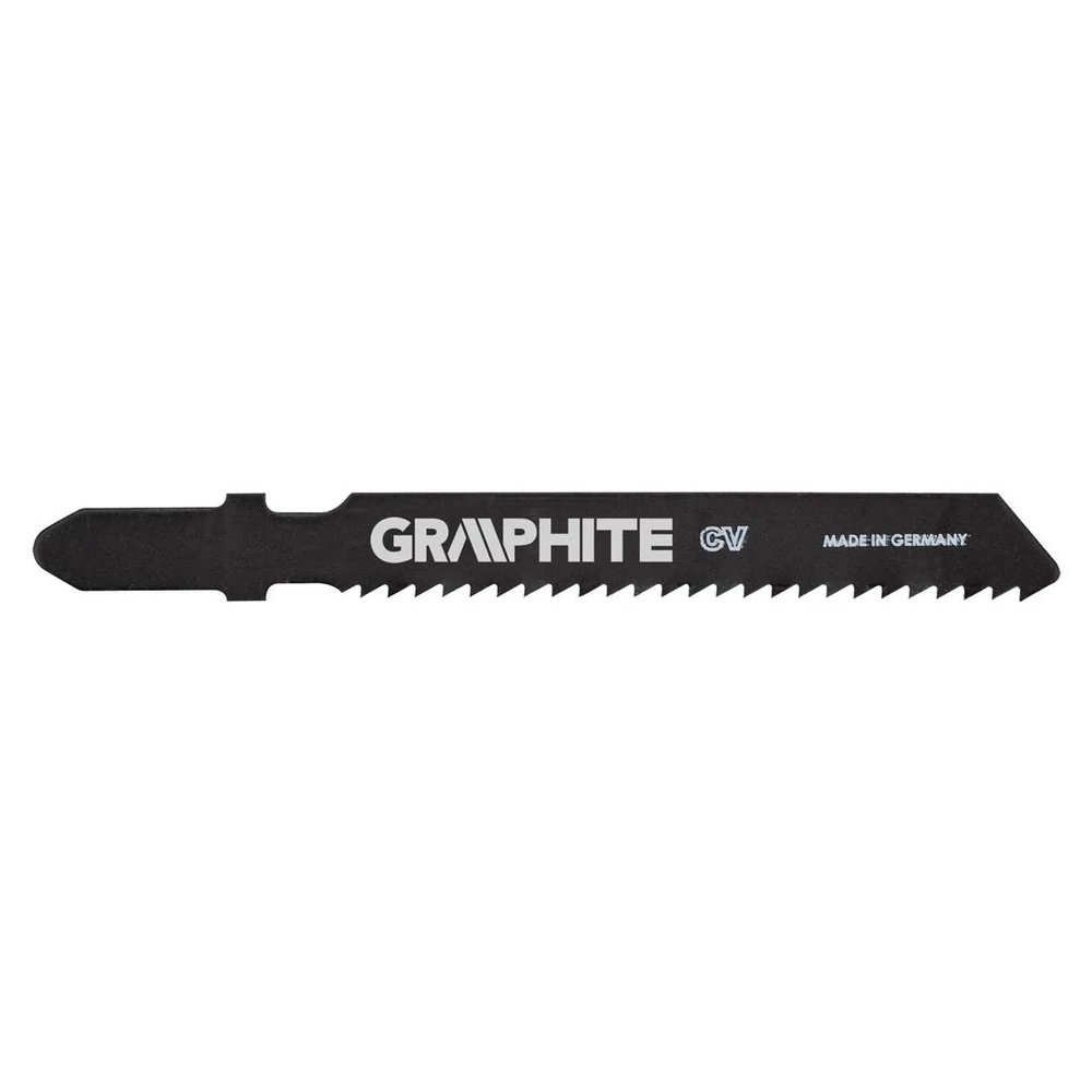 GRAPHITE szúrófűrész pengék fa és műanyag közepesen pontos vágásához. A T befogás alkalmazhatóvá teszi a pengét az összes Bosch típusú vagy univerzális befogással szerelt szúrófűrészben. A CrV (króm-vanádium) acél a pengéknek nagy rugalmasságot és hőmérséklet-állóságot kölcsönöz. A penge csiszolt oldalfelületei csökkentik a súrlódást és a penge felmelegedését fűrészelés közben.