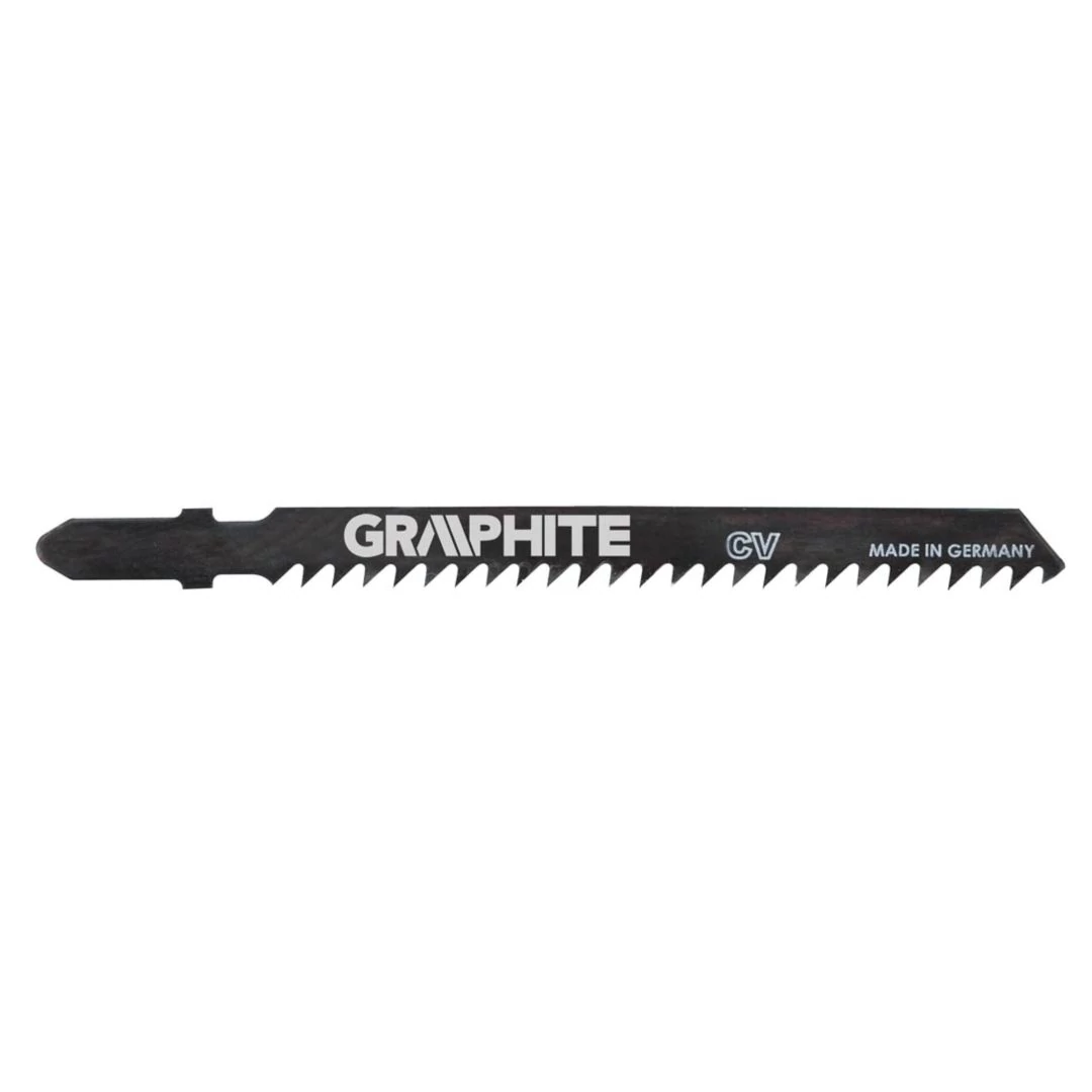 GRAPHITE szúrófűrész pengék fa és műanyag közepesen pontos vágásához. A T befogás alkalmazhatóvá teszi a pengét az összes Bosch típusú vagy univerzális befogással szerelt szúrófűrészben. A CrV (króm-vanádium) acél a pengéknek nagy rugalmasságot és hőmérséklet-állóságot kölcsönöz. A penge csiszolt oldalfelületei csökkentik a súrlódást és a penge felmelegedését fűrészelés közben.