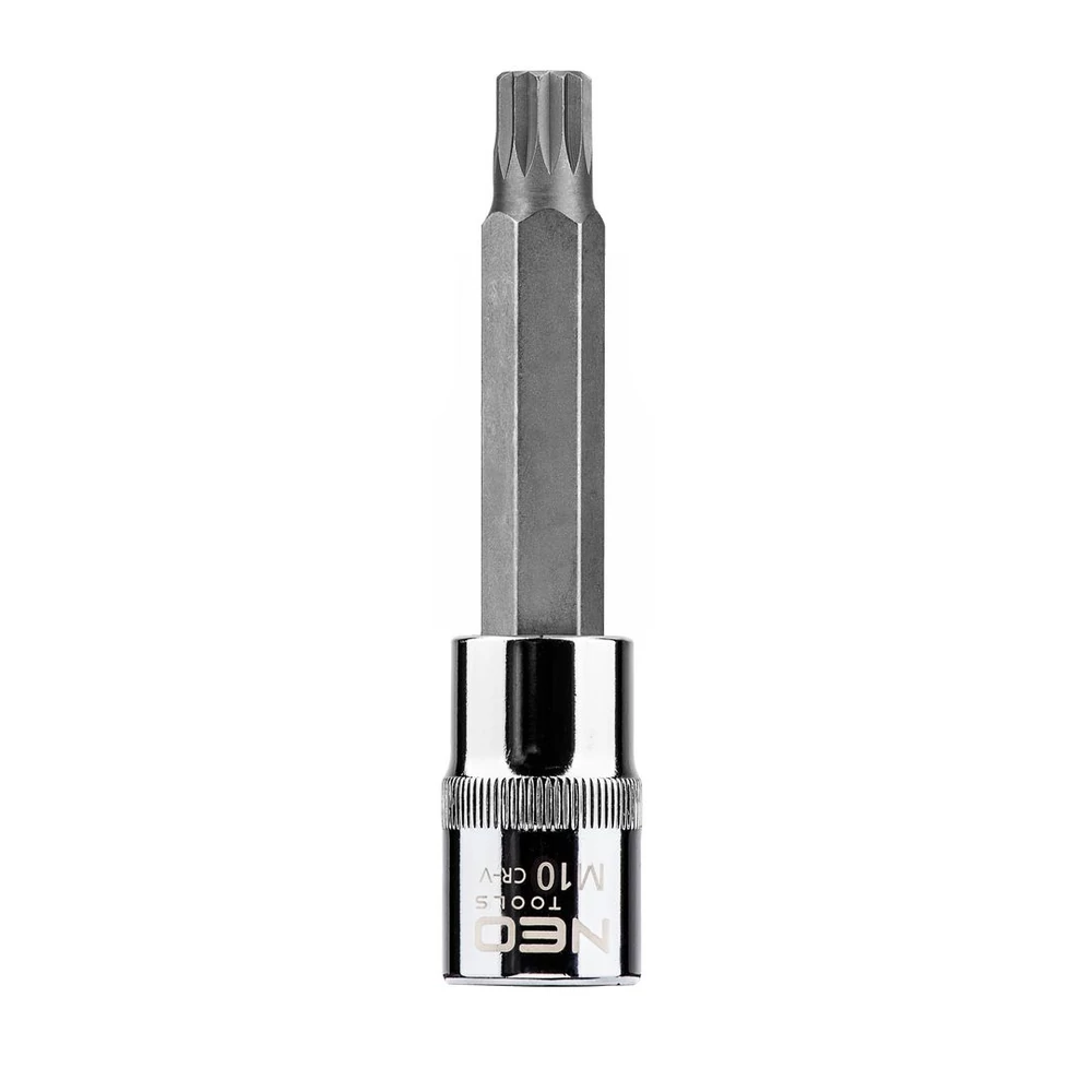 A NEO ½"-os Spline dugókulcs króm-vanádium acélból készül, 100mm HOSSZÚ, DIN 3124 . A dugókulcs szferikus kialakítása igen széles alkalmazási lehetőségeket biztosít, lehetővé téve a Torx, a Spline, a 12-lapú, a metrikus, a colos és a négylapú csavarok kicsavarását is. A szerszám minőségét bizonyítja a TÜV tanúsítvány és a 25 éves gyártói garancia. A NEO márka a professzionális igényeket is kielégíti.