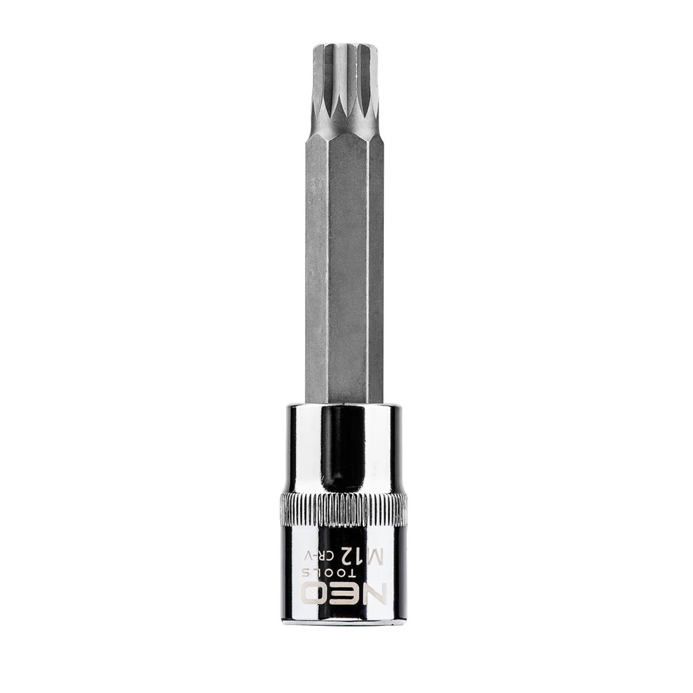 A NEO ½"-os Spline dugókulcs króm-vanádium acélból készül, 100mm HOSSZÚ, DIN 3124 . A dugókulcs szferikus kialakítása igen széles alkalmazási lehetőségeket biztosít, lehetővé téve a Torx, a Spline, a 12-lapú, a metrikus, a colos és a négylapú csavarok kicsavarását is. A szerszám minőségét bizonyítja a TÜV tanúsítvány és a 25 éves gyártói garancia. A NEO márka a professzionális igényeket is kielégíti.