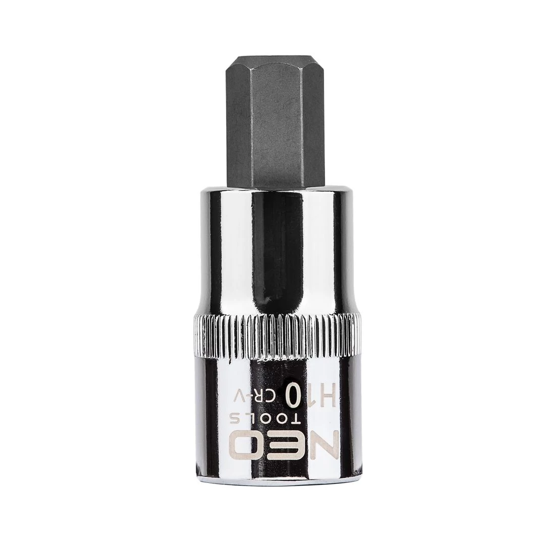 NEO imbusz bit ½”-os fészkű dugófeltéten, 55 mm hosszú, a DIN 7422 szabványnak megfelelő. A dugófeltét nagy ellenállóképességű króm-vanádium acélból készül. A hatlapú bit kiváló minőségű S2 acélötvözetből készül. A szerszám minőségét bizonyítja a TÜV tanúsítvány és a gyártó által nyújtott 25 éves jótállás. A NEO márka a professzionális igényeket is kielégíti.