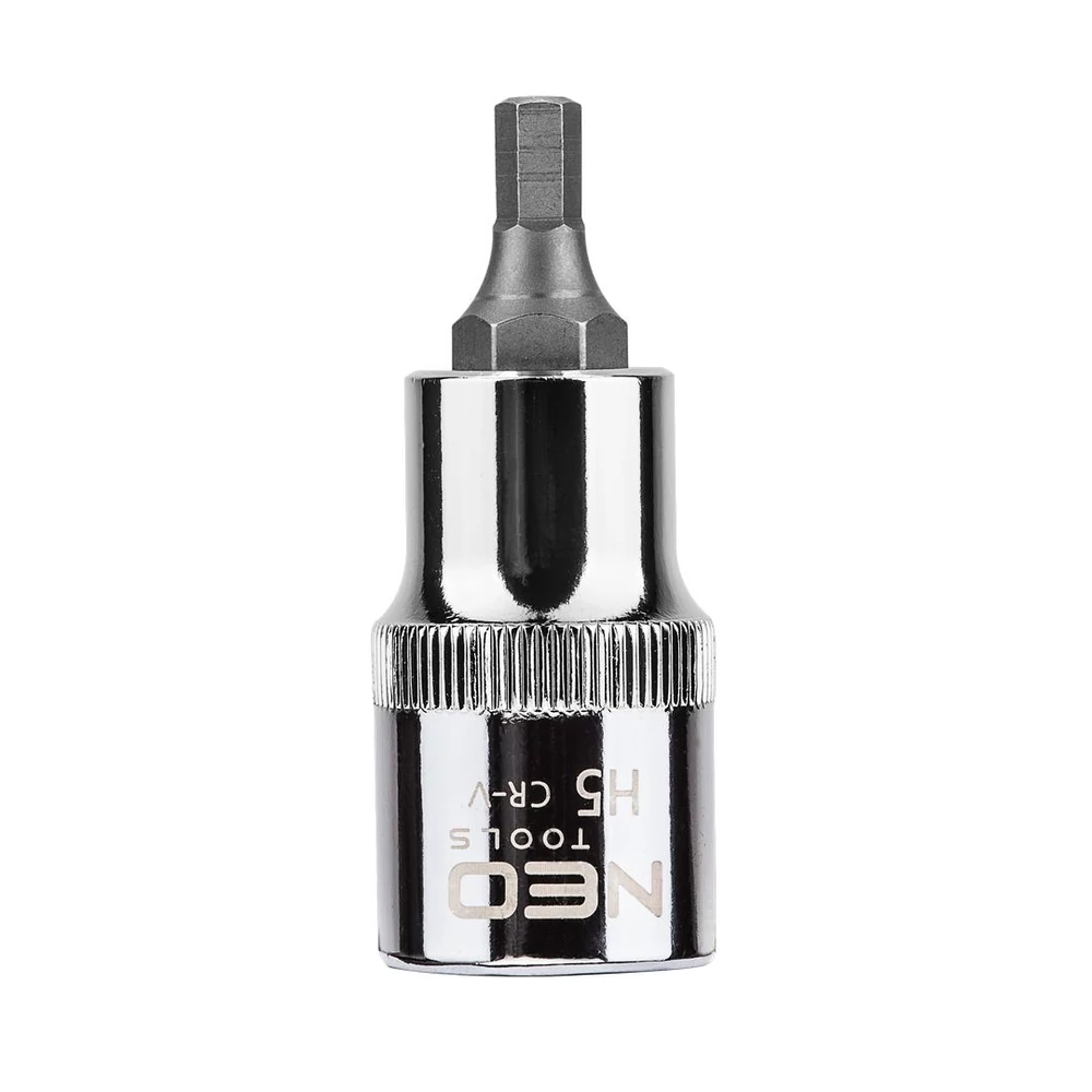 NEO imbusz bit ½”-os fészkű dugófeltéten, 55 mm hosszú, a DIN 7422 szabványnak megfelelő. A dugófeltét nagy ellenállóképességű króm-vanádium acélból készül. A hatlapú bit kiváló minőségű S2 acélötvözetből készül. A szerszám minőségét bizonyítja a TÜV tanúsítvány és a gyártó által nyújtott 25 éves jótállás. A NEO márka a professzionális igényeket is kielégíti.