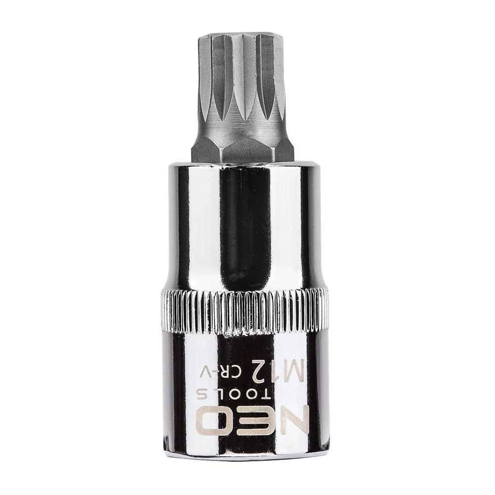 A NEO ½"-os Spline dugókulcs króm-vanádium acélból készül, 55mm HOSSZÚ, DIN 3124 . A dugókulcs szferikus kialakítása igen széles alkalmazási lehetőségeket biztosít, lehetővé téve a Torx, a Spline, a 12-lapú, a metrikus, a colos és a négylapú csavarok kicsavarását is. A szerszám minőségét bizonyítja a TÜV tanúsítvány és a 25 éves gyártói garancia. A NEO márka a professzionális igényeket is kielégíti.