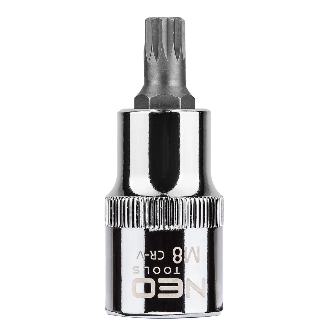 A NEO ½"-os Spline dugókulcs króm-vanádium acélból készül, 55mm HOSSZÚ, DIN 3124 . A dugókulcs szferikus kialakítása igen széles alkalmazási lehetőségeket biztosít, lehetővé téve a Torx, a Spline, a 12-lapú, a metrikus, a colos és a négylapú csavarok kicsavarását is. A szerszám minőségét bizonyítja a TÜV tanúsítvány és a 25 éves gyártói garancia. A NEO márka a professzionális igényeket is kielégíti.