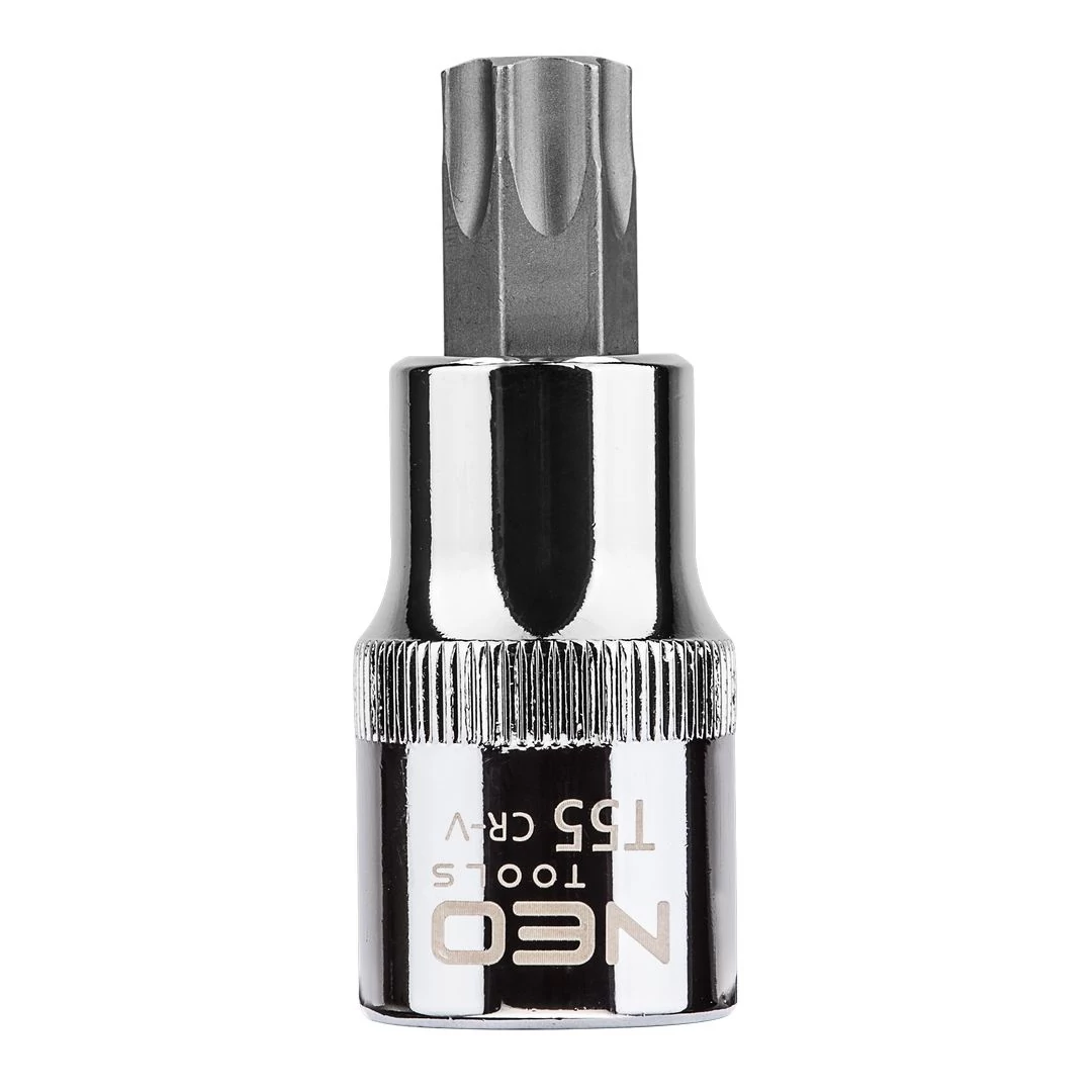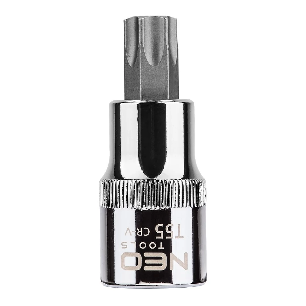 NEO Torx bit ½”-os fészkű dugófeltéten, 55 mm hosszú. A dugófeltét nagy ellenállóképességű króm-vanádium acélból készül. A hatlapú bit kiváló minőségű S2 acélötvözetből készül. A szerszám minőségét bizonyítja a TÜV tanúsítvány és a gyártó által nyújtott 25 éves jótállás. A NEO márka a professzionális igényeket is kielégíti.