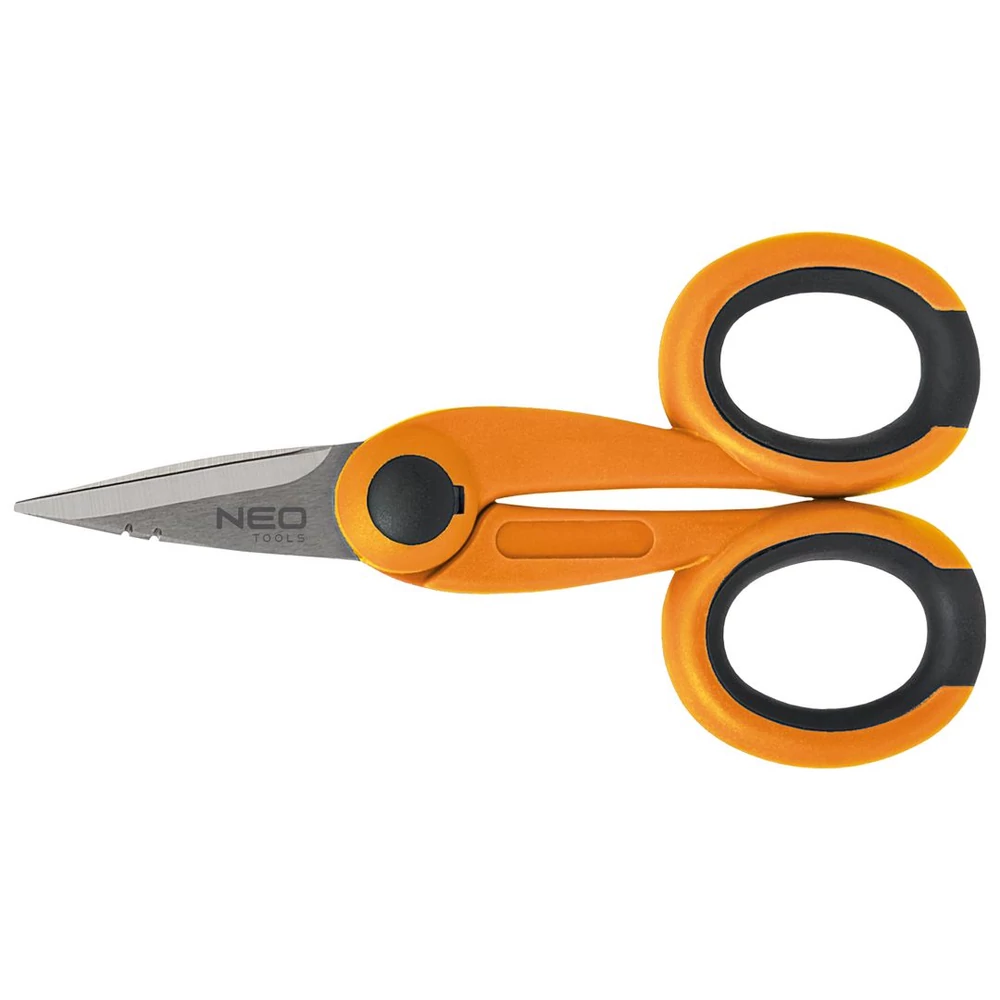 NEO kábelvágó és blankoló olló, 140 mm-es, élhossza 45 mm. A lézeresen fogazott élek megakadályozzák a vágott anyag kicsúszását. Két bevágással a 0,7 mm² és az 1,0 mm²-es vezetékek csupaszolásához. Az ergonómikus bimateriál markolat növeli a használat komfortját. A szerszám minőségét bizonyítja a TÜV tanúsítvány és a gyártó által nyújtott 25 éves jótállás. A NEO márka a professzionális igényeket is kielégíti.