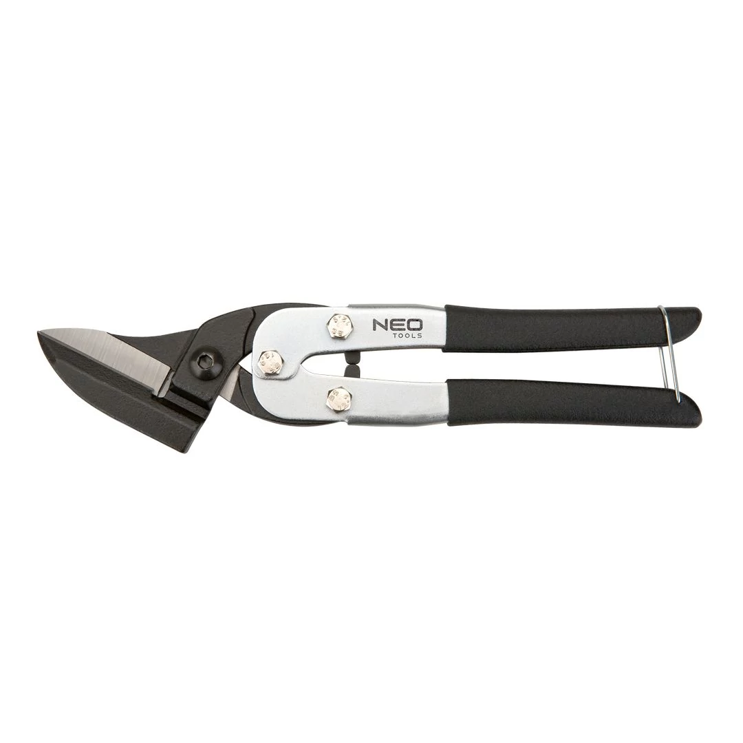 A NEO lemezvágó olló max. 0,9 mm vastag acéllemezek, max. 0,7 mm vastag edzett acéllemezek, max. 1 mm vastag alumínium lemezek, max. 1,1 mm vastag rézlemezek és max. 5 mm vastag műanyag lemezek vágására szolgál. Szárai kiváló minőségű króm-molibdén acélból készülnek. Az élek indukciós edzést kapnak, ami jelentősen megnöveli tartósságukat. Vágóél kiképzése nem engedi kicsúszni a vágott anyagot. A gumifeltétes szemek stabilan fekszenek a kézben, nem csúsznak ki belőle. A termék kiváló minőségét és megbízhatóságát bizonyítja a TÜV Rheinland tanúsítvány. A NEO márka a professzionális igényeket is kielégíti.