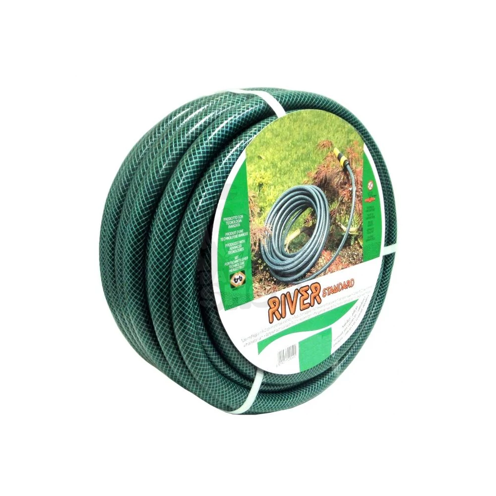 RIVER STANDARD olasz gyártású locsolócső. Rugalmas lágy PVC tömlő megerősített textilszállal és poliészter bevonattal. A slag 3 rétegű, erős szövetbetéttel. Használható öntözésre és locsolására.