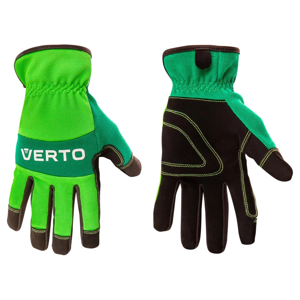 VERTO 8" méretű védőkesztyű. A munkavégzés során védelmet biztosít a kéznek szennyeződések, karcolások, zúzódások és káros hatások ellen. Kiváló minőségű műbőrből készül. Igen magas a tépésállósága. Használata nagyon kényelmes, ugyanakkor megakadályozza a szerszámok kicsúszását a kézből. A CE jelölés a biztonság garanciája, bizonyítja, hogy a termék teljesít minden európai uniós követelményt.