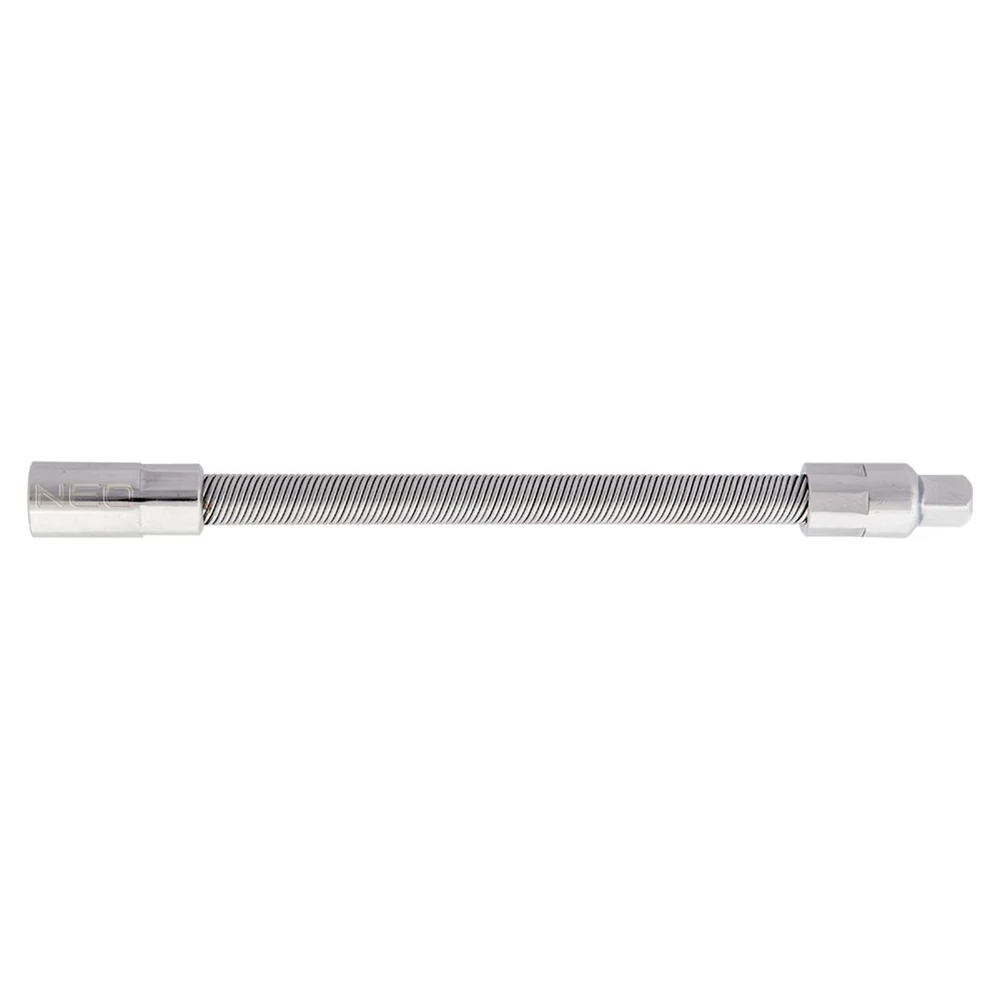NEO 140 mm-es, ¼”-os flexibilis hosszabbító. Nagy ellenállóképességű króm-vanádium acélból készül. Lehetővé teszi a munkát nehezen hozzáférhető helyeken. A termék kiváló minőségét és megbízhatóságát bizonyítja a TÜV Rheinland tanúsítvány. A NEO márka a professzionális igényeket is kielégíti.