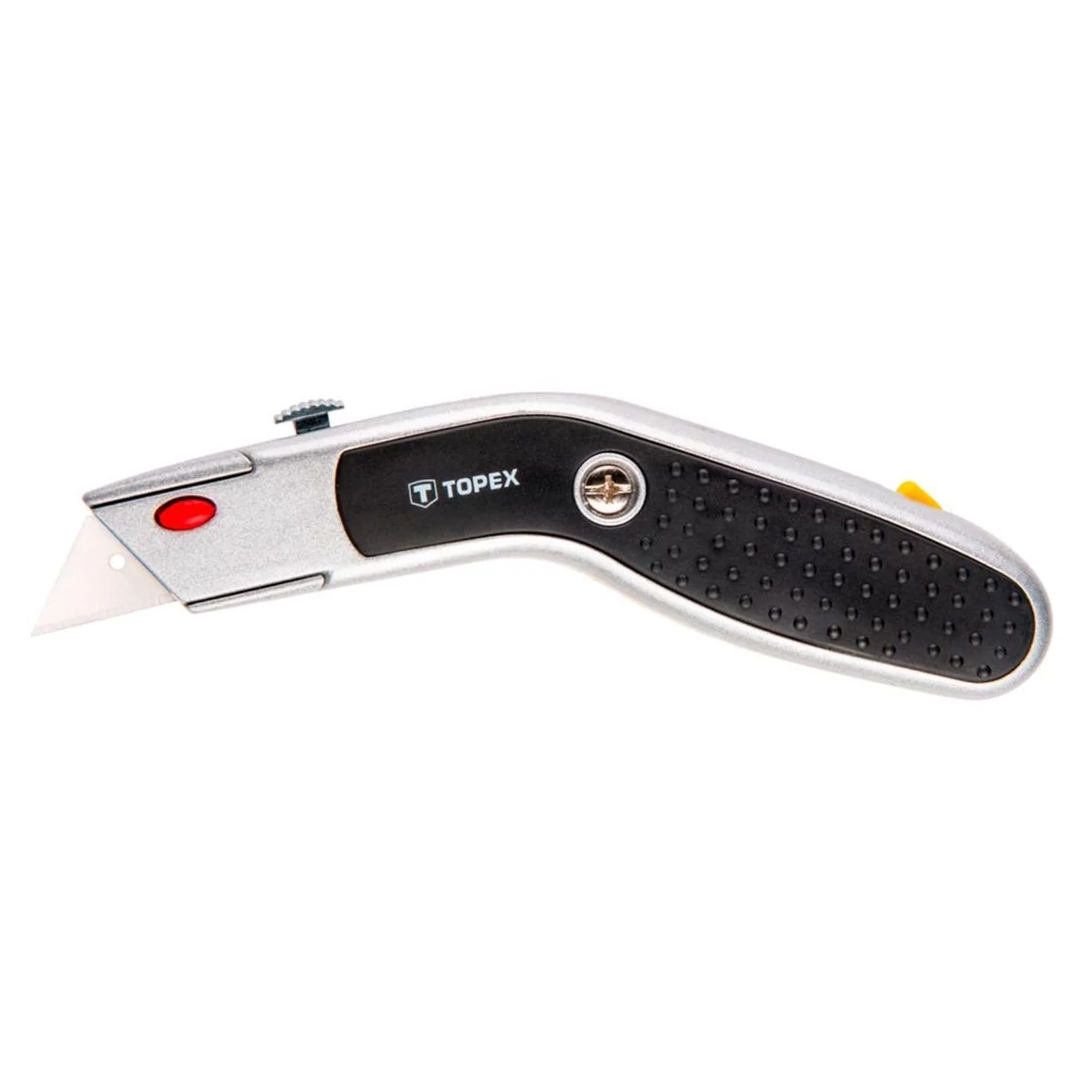 A TOPEX trapézpengés kés kiválóan alkalmas szerelési, barkácsolási munkákhoz. A fém markolat biztosítja a szerszám tartósságát. Külön előnye a szerszámmentes pengecsere. Az ergonómikus formakialakítás és a csúszásmentes markolatbetét biztosítja a munkavégzés biztonságát és kényelmét. A TOPEX márka ezermestereknek készül.