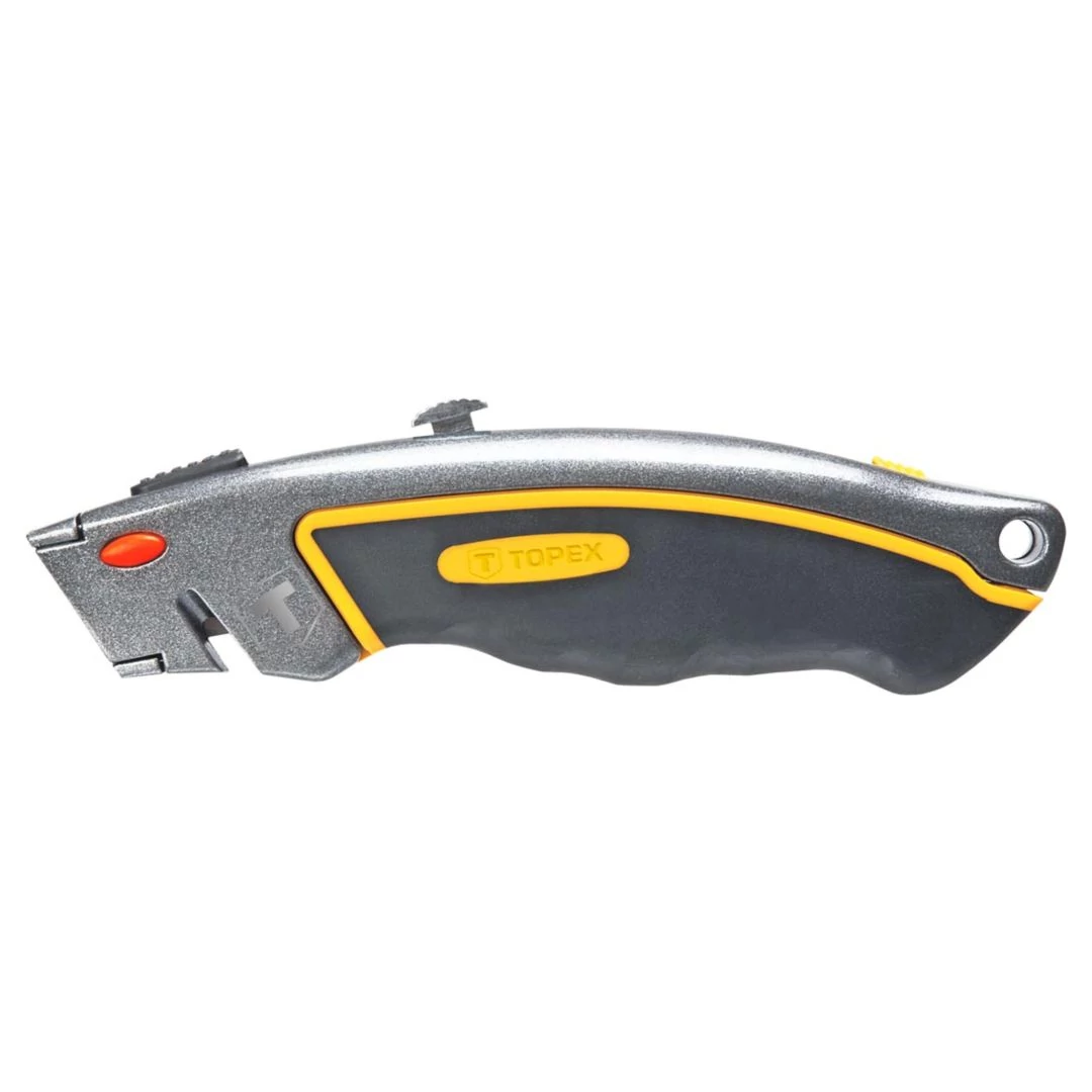 A TOPEX trapézpengés kés kiválóan alkalmas szerelési, barkácsolási munkákhoz. A fém markolat biztosítja a szerszám tartósságát. Külön előnye a szerszámmentes pengecsere és a tartalékpenge-tároló. A ház bevágása lehetővé teszi zsinórok, szíjak biztonságos vágását. Az ergonómikus, csúszásmentes anyaggal bevont markolat biztosítja a kényelmet és a biztonságot a munkavégzés során. A TOPEX márka ezermestereknek készül.