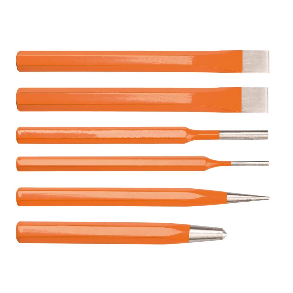 A NEO vágó és kiütő készletben található 2 db kiütő, 2 db lapos vágó, 1 db kúpos csapszegkiütő és 1 db pontozó. Mindegyikük kiváló minőségű, a szerszámnak hosszú élettartamot biztosító króm-vanádium acélból készült. Praktikus, a tárolást és a szállítást megkönnyítő műanyag csomagolásban. A NEO márka a professzionális igényeket is kielégíti.